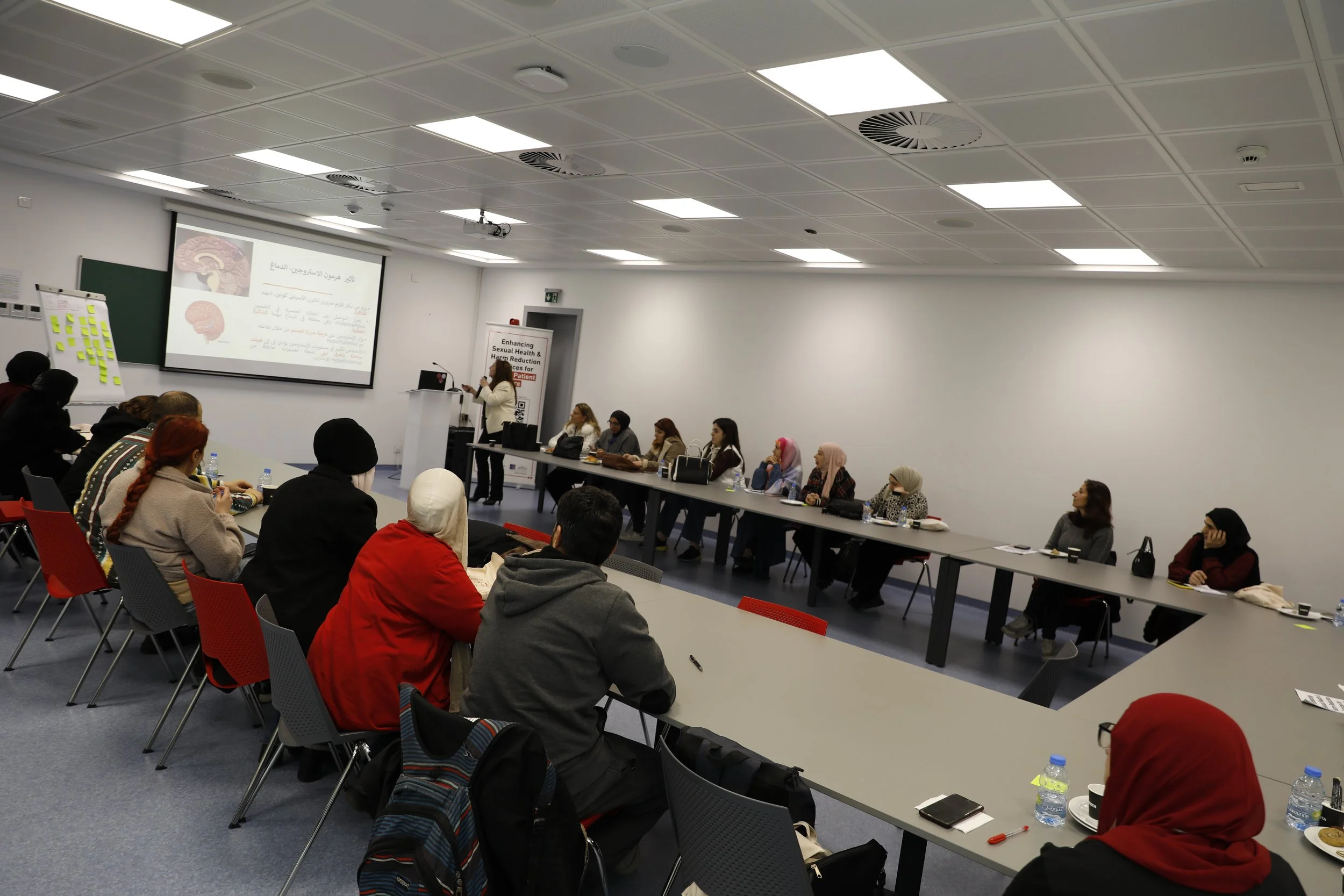 The Workshop was held at the Medical Sciences Campus at the University of Saint-Joseph, and more than 28 healthcare providers from all over Lebanon attended, including midwives, nurses, pharmacists, psychologists, and social workers in health-related fields.